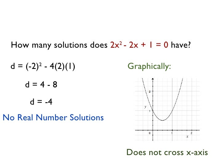 How Many Real Solutions Calculator - Simply type in a number for 'a', 'b' and 'c' then hit the 'solve' button.. Click the blue arrow to submit and see the result! There are other ways of solving a quadratic equation instead of using the quadratic formula, such as factoring (direct factoring, grouping, ac method), completing the square, graphing and others. What is the real number of solutions? We note that both the given equations are in the variable x, and are of the quadratic form ax 2 + bx + c. This includes the natural numbers.